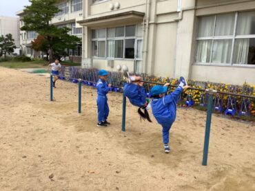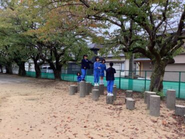 寒さに負けず、鬼ごっこやサッカーをしたり、鉄棒、きのこ山で遊んだりしていました。