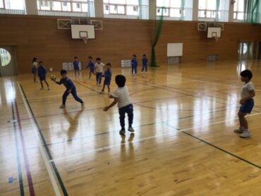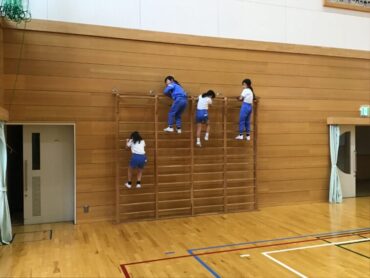ドッジボールをしたり、肋木に登ったりして元気に体を動かしていました。