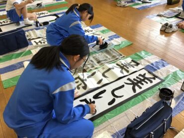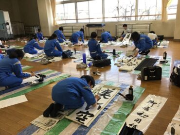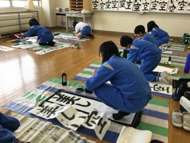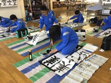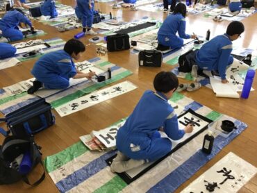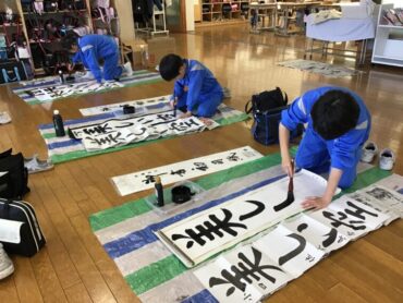 4年生では、だるま筆を使用して練習に取り組んでいます。