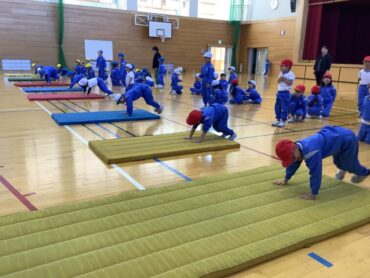 2025.12.22 NEW 1年生 ○1年生 体育科「マット運動」 1年生は体育の授業でマット運動に取り組んでいます。 動物の歩き方の真似をした動きや、ゆりかごのようにゆらゆらとした動きに挑戦しました。 安全に気を付けながら、楽しく元気に活動しました💪 次回はどんな動きに挑戦するのでしょうか…!とても楽しみですね。