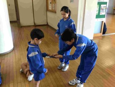 各ポイントでは、さまざまな挑戦内容が書かれた紙を持った6年生が待ってて、1~5年生が協力して取り組んでいました。